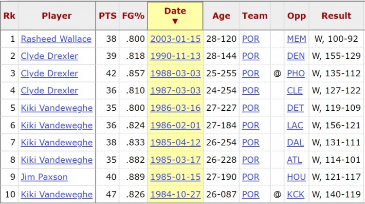 根据数据统计,卡马拉是2003年的拉希德·华莱士之后、开拓者队史上首位以至少80%命中率砍下至少35分的球员。